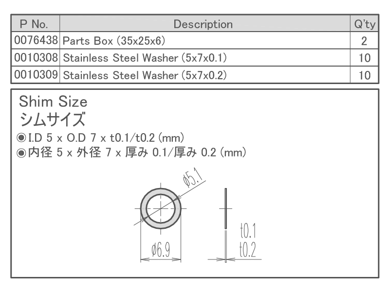 There are two thickness (0.1mm & 0.2mm) in every different spec of shims.