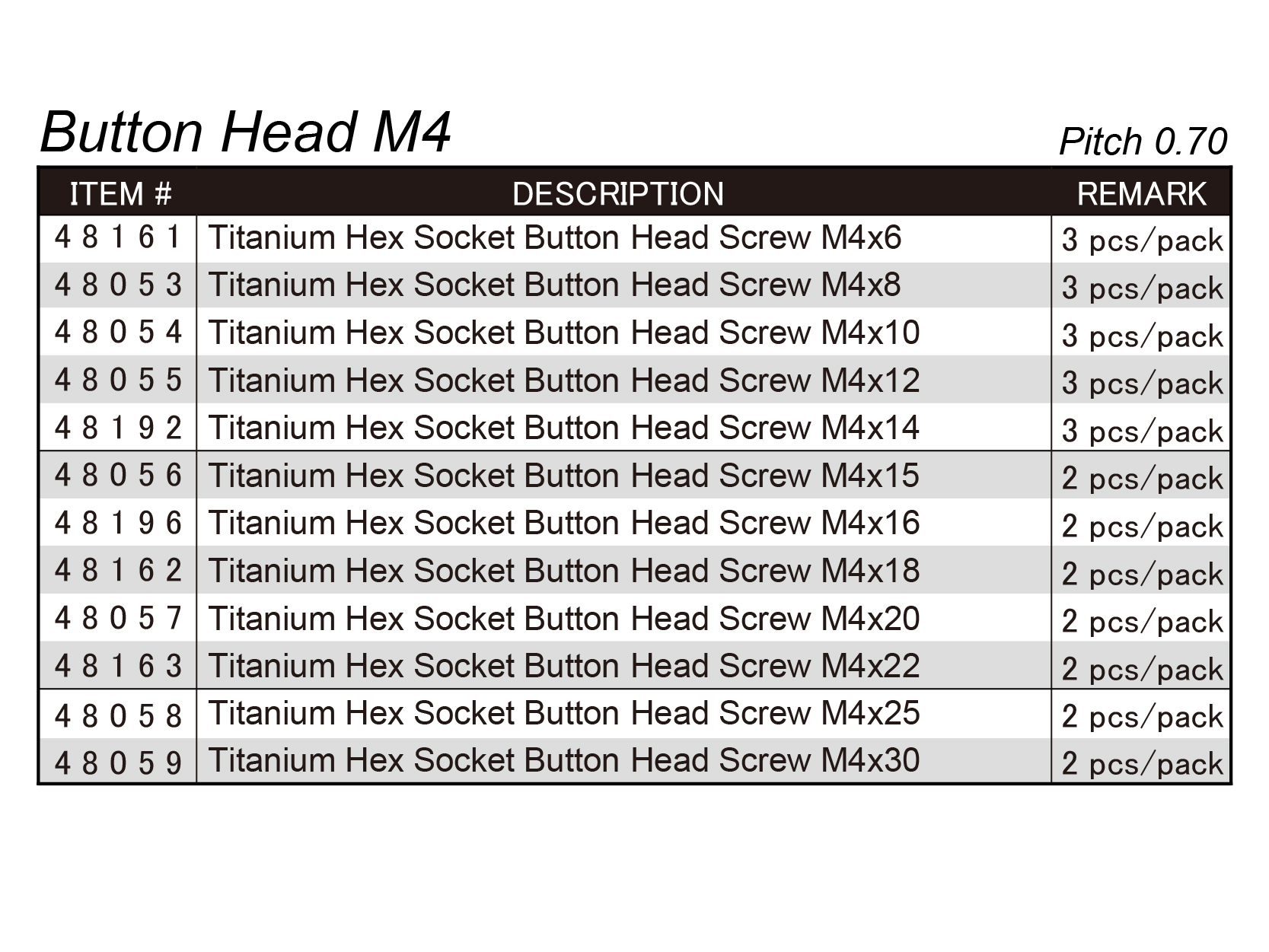 Material: Pure TitaniumProcessing Method: ForgingHex Socket: 2.5mm